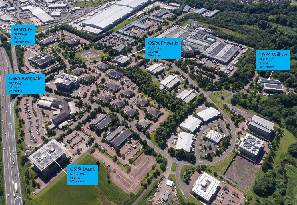 5 buildings at 274,872-sqft NIA with 185 office units.